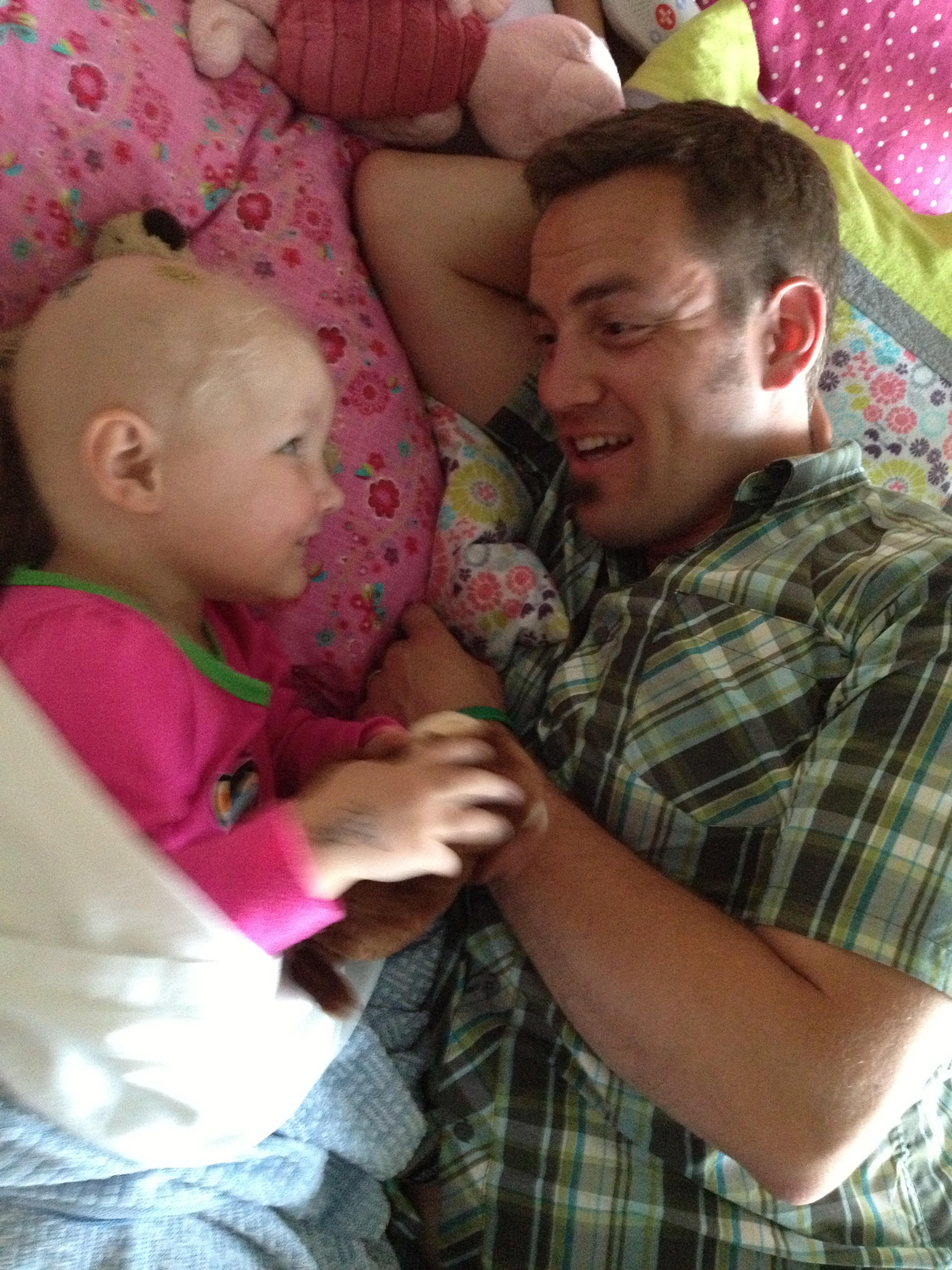 It has been a strange week. I got sick on Monday morning and was thus unable to even come on the Unit, much less be with Allistaire until Friday morning. During that time, Sten cancelled his original flight back to Bozeman and stayed with Allistaire in the hospital. I know this was a good time for the two of them to be together, but it is was hard to stay away and hard to see how dramatic the change has been in Allistaire in just five days. It is so sad seeing her just lay there, so uncomfortable and her face distorted by fluid. She just isn’t herself. The other day I remembered when we took Solveig camping at Wenatchee State Park when she was 3 – such different lives. Makes me sad. It draws me into grief, but I ever have to stop myself and put this time into perspective. We could be home. She could be having hospice nurses attending to her. Instead she is here on this 125th consecutive day in the hospital. She’s been given one more chance to beat this thing. And today new life has begun. Now we will need to be on the alert for signs of GVHD (Graft Versus Host Disease), where the new cells/immune system will likely recognize her body as foreign and start to attack. Acute GVHD shows up typically in the skin, the gut and the liver.