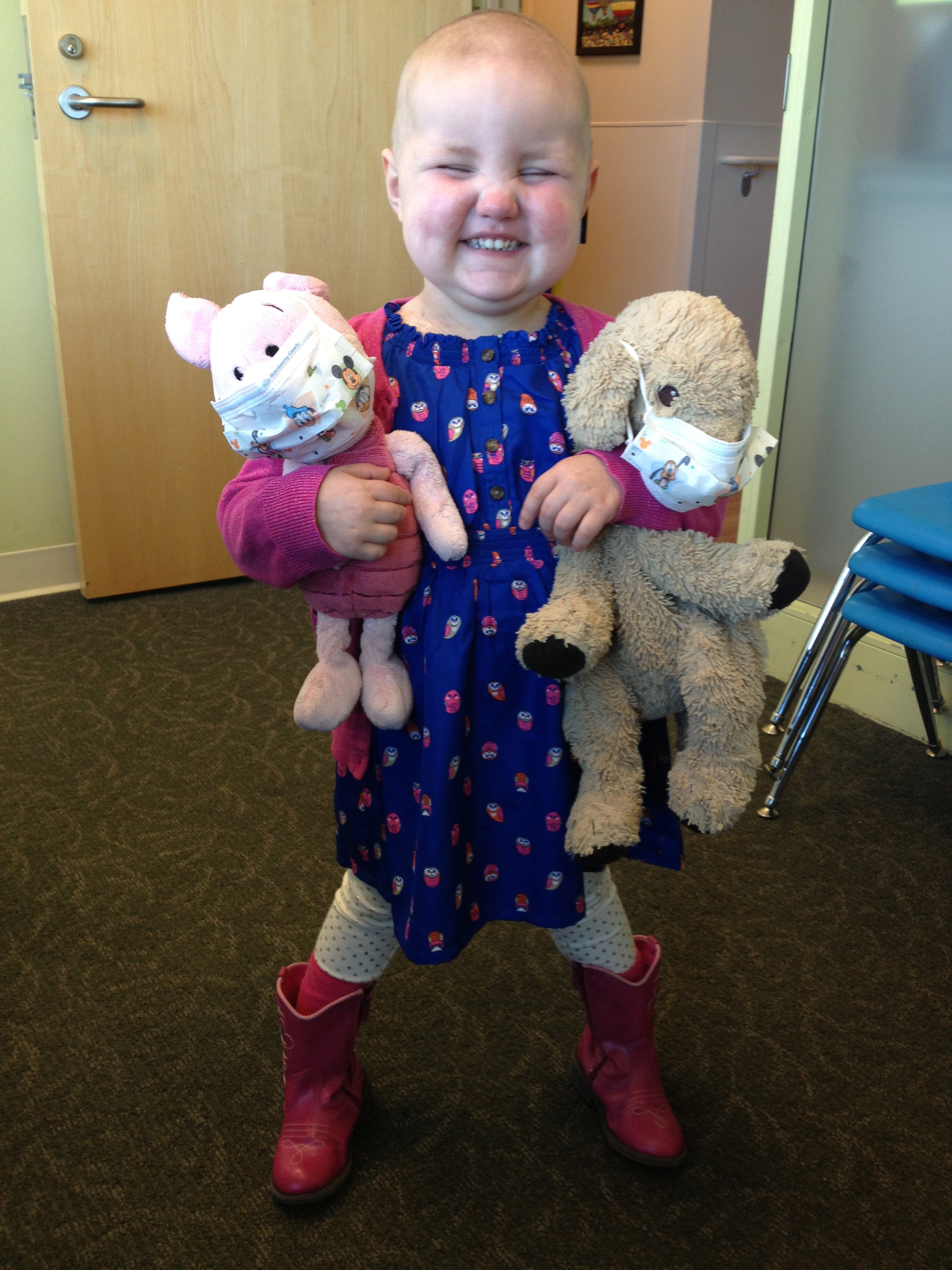 Once Allistaire’s cancer was detectable, there was the increased need to pull back on the immune suppression as much as safely as possible in order to give the donor/graft cells as much ability as possible to identify and destroy the remaining cancer cells. What Dr. Delaney hopes, and believes is possible, is that we have hit this sweet spot where the transplant wiped out the vast bulk of her disease, and now enough time has passed for the graft to be fully established, give a little chemo to help clear the few remaining cancer cells, pull back on the immune suppressants more and hope to maximize the graft versus leukemia (GVL) phenomenon. From the beginning (prior to transplant) , it was abundantly clear that Allistaire’s cancer would never be cured by chemotherapy alone. We were always going to need that mysterious and beautiful GVL. So it seems that when I was so emphatically told that Allistaire’s only chance of survival was to have another transplant, that was accurate in terms of all previous statistics. Dr. Delaney made the statement that as far as she knows, Allistaire is the highest risk patient they have ever transplanted. I assume this means high risk in terms of amount of disease given the enormous amount in the marrow in addition to the fact that it was in eight additional places in her body outside of her marrow. Allistaire is on a road in which there are no numbers to predict her course – pretty exciting, terrifying and total and utter gift!