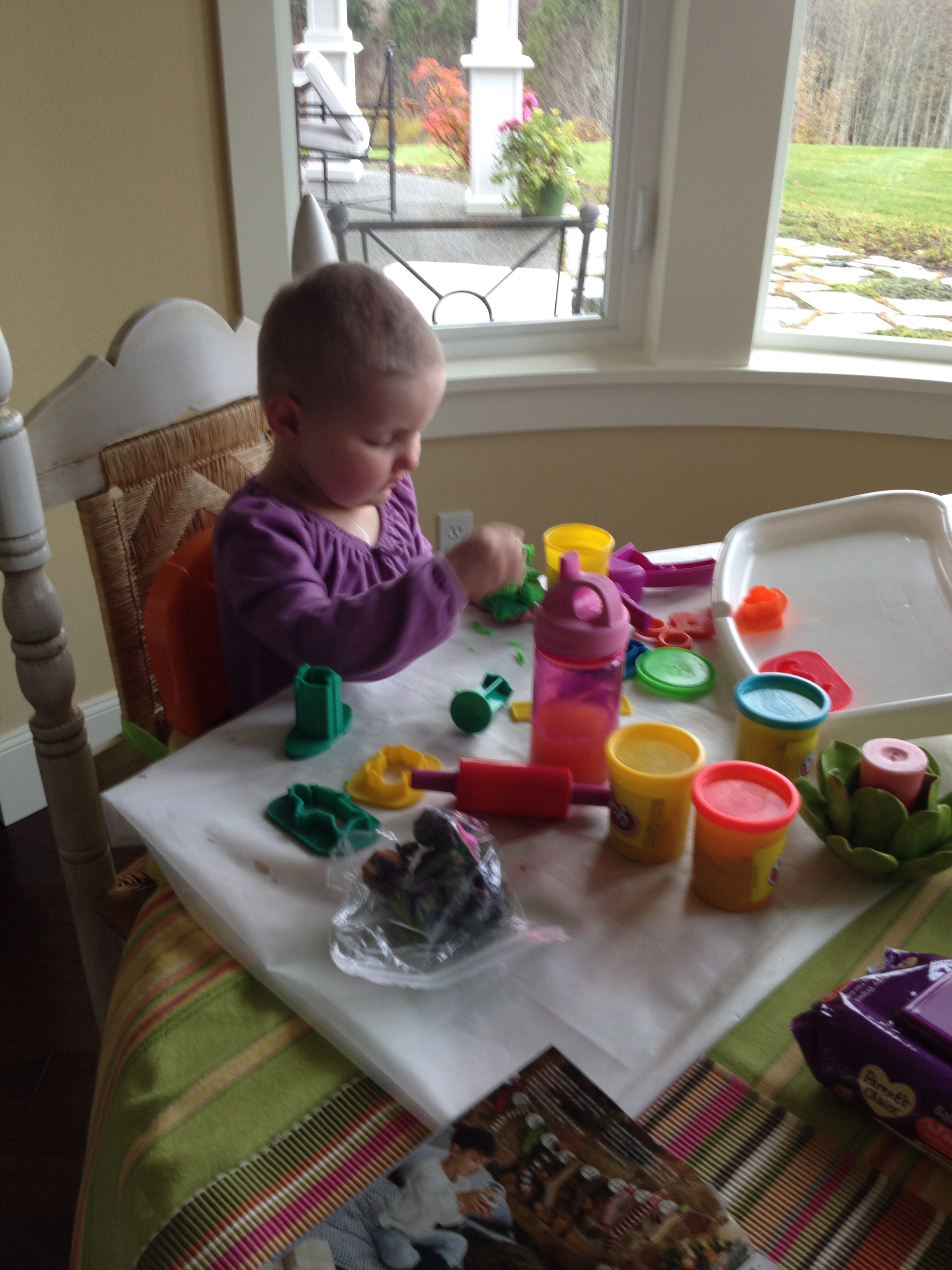 Father, thank you for quality time.  Thank you that my child looks like a million bucks.  Thank you that Allistaire’s energy surpasses that of nearly everyone I know.  Eating is a phenomenal struggle. It has been an epic battle but I pray as we get farther from chemo, it’ll get a little better again.  She actually gained a little weight, up from 16.3 kg to 16.6 in a week.  Another victory, another gift.  Our hosts from this past week and a half have offered their home again for Allistaire’s December course of chemo that should start the 23rd.  More provision, more bounty.