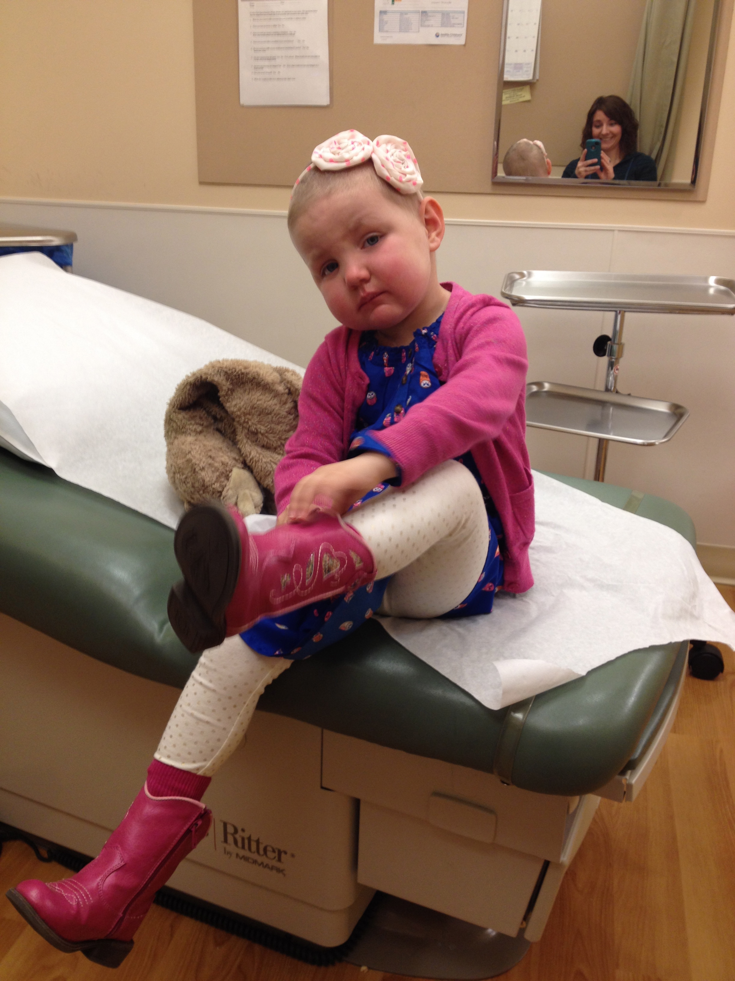 Then Monday came.  Allistaire’s ANC had dropped to 326.  I had not seen an ANC so low since our days early after transplant.  Only three days before it had been 1710.  Oh please, please just let it be because of this cold, this virus, she has.  So the day continued with an echocardiogram, a clinic appointment with Dr. Pollard, and a bone marrow test.  Late in the day I called for echocardiogram results, unable to wait any longer.  Allistaire’s ejection fraction had risen slightly from 50 to 53 and her shortening fraction had risen from 25 to 27 – still a little below low-normal but slightly improved and we’ll take that!  Allistaire joyfully talked to Nana and Papa and Daddy on the phone, telling them her heart was stronger, little knowing just how significant and glorious this news was.  The crazy part is that this weakening of the heart is not a result of her current chemo which is not known to result in reduced cardiac function.  This is from her original chemo, nearly two years ago.  Apparently, girls under 2 (she was only 21 months when she began treatment) are hardest hit and she had a number of chemos that are very hard on the heart.  They tell you this is possible, even likely, but it’s just hard to comprehend such delayed consequences of treatment.  So what a relief that her heart was strong enough to continue.  Thank you Father, thank you!