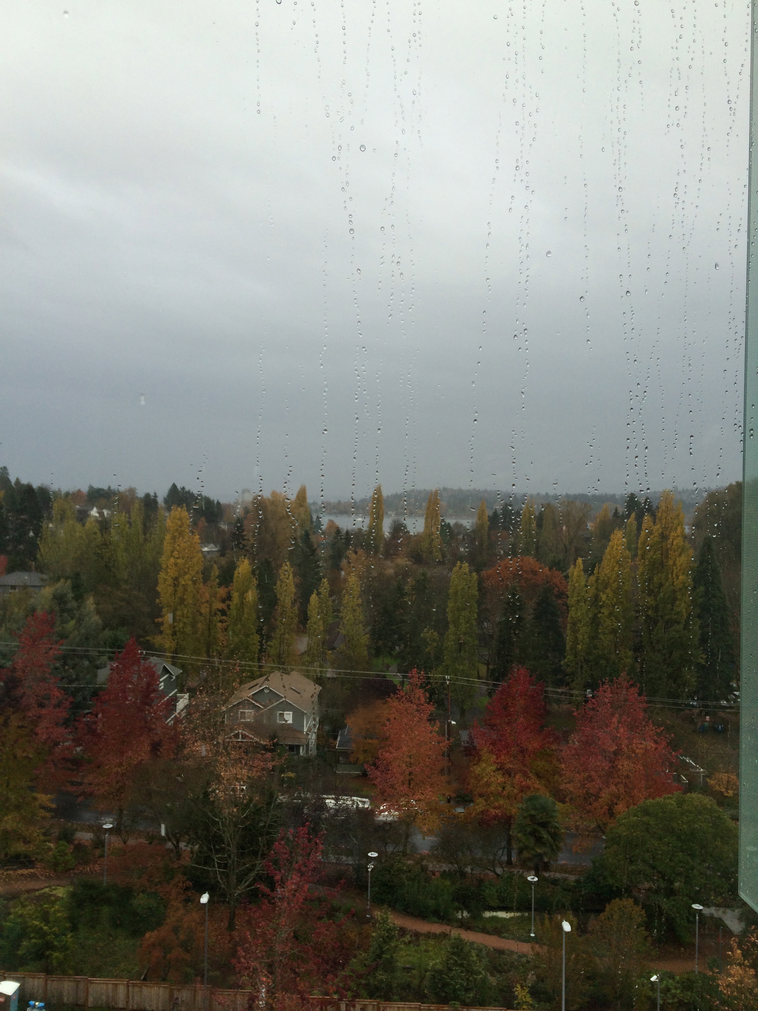 We’ve settled into a most lovely room, one of the best I’m told, 218. The view stretches wide out to the south beyond a sea of trees clinging to fall, to the lake and off in the clouds, that mysterious looming form of Mt. Rainier, cloaked behind clouds. I already know the drawers and what fits where. I ask for more of the barf buckets to organize socks, underwear, snacks and miscellaneous utensils, straws and cups. The little green pot of fake orange flowers sits on the table, reminding us of a world outside that bears such dangers as fungus and bacteria and the passing beauty of plant life, ever dying and being reborn.
