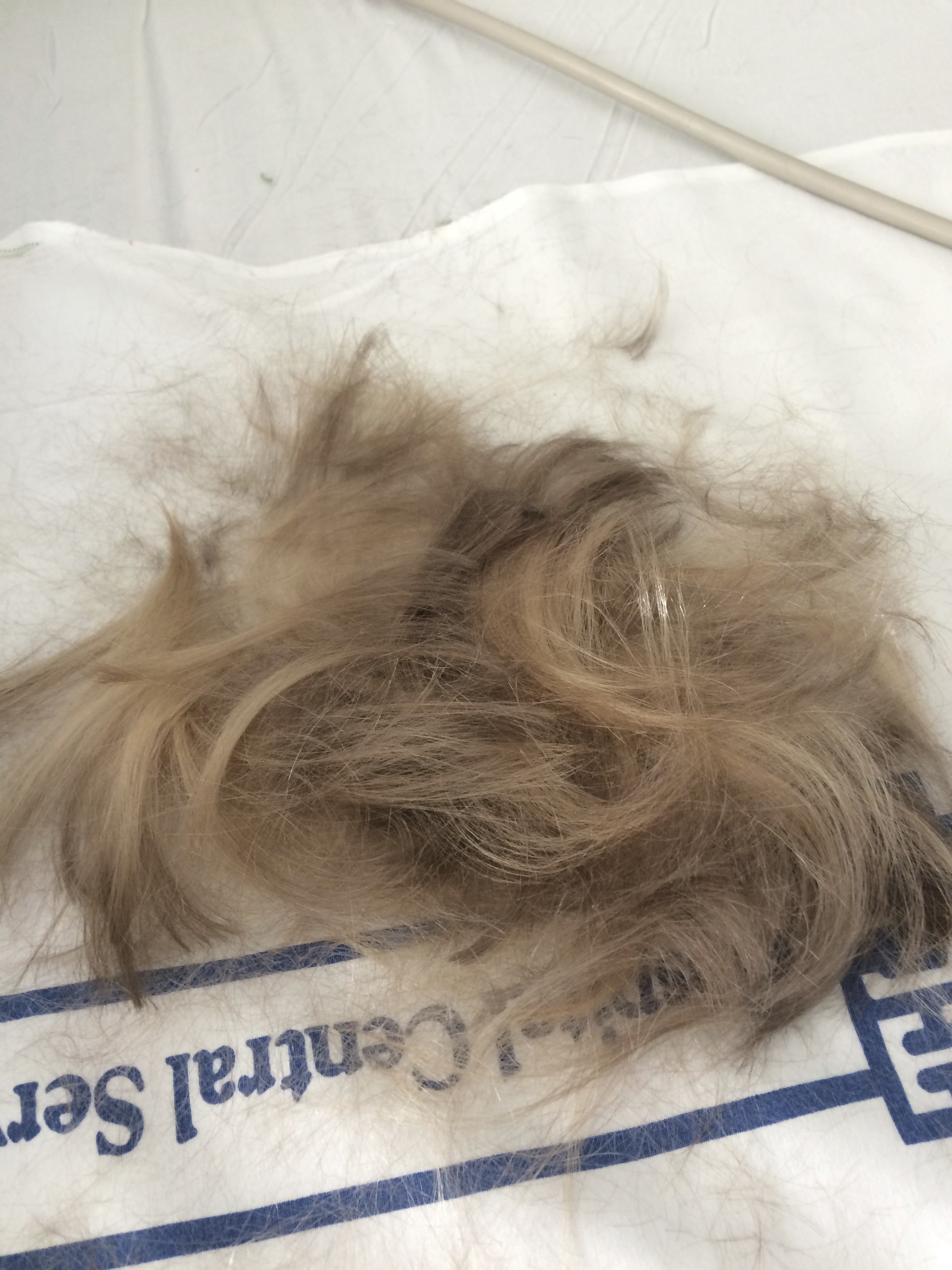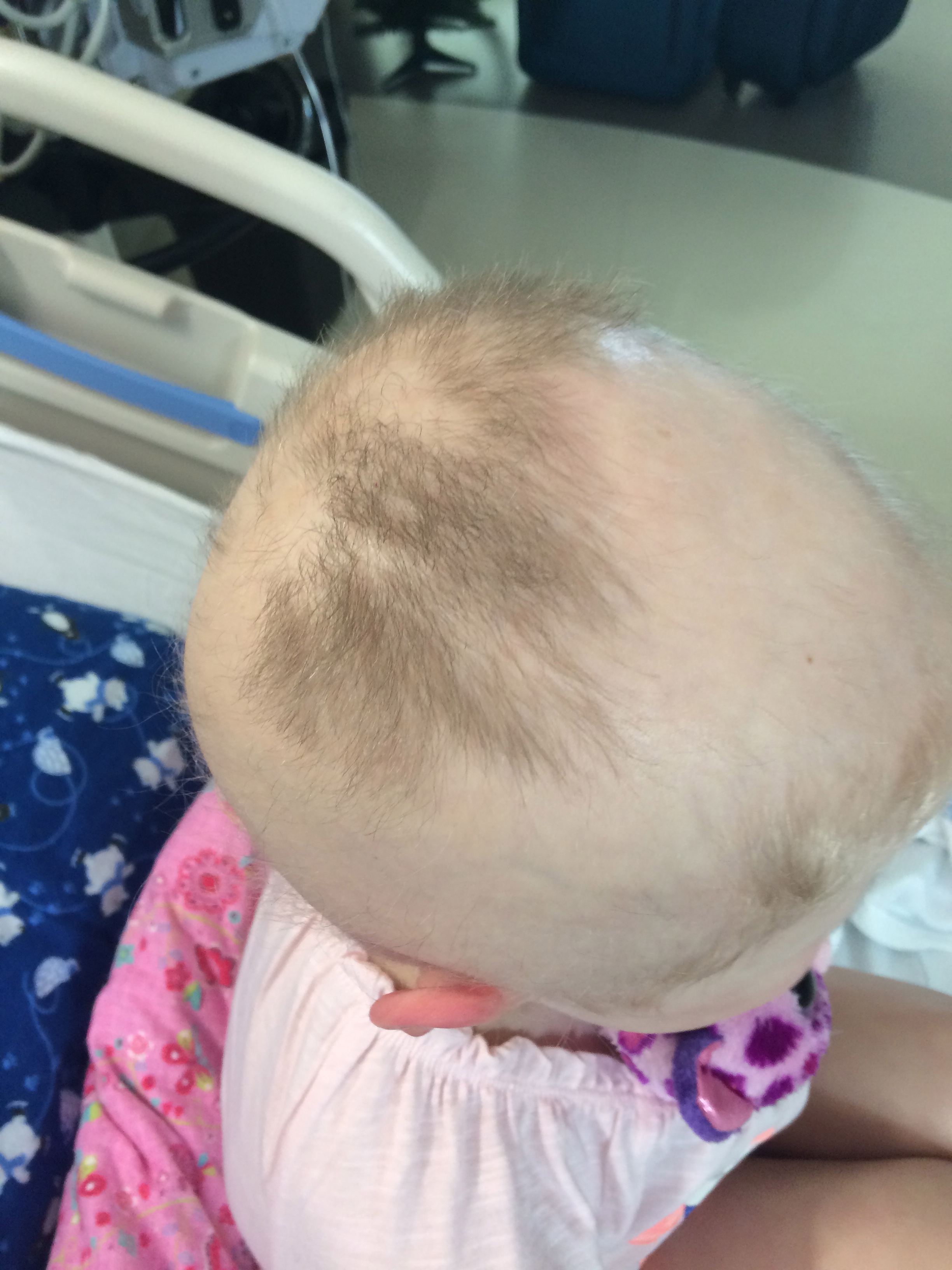 Wednesday had been a particularly hard day. Sten left the day before, great welling of tears in his eyes as he held her goodbye, not knowing if he would ever again see her with hair. Who would she be when he came back? Her hair had started to fall out and began to coat everything, including Doggie. Hair all over her clothes, in her mouth and food. I told her I would cut it before I left, but I wasn’t prepared for her request Wednesday morning that I cut it because it was bothering her. In my unconscious mind, I still had one full day left with her before more of her would be stolen away. But I knew she was right, and I forced my hand to function and grasp the scissors and not gasp at every cut through the blonde hair that has never had the chance to grow more than five inches long. And there she sat, part of her gone and in her place a prison inmate, a child being sent to the gas chambers. We walked a slow drudge to the bathtub room to wash away the debris of life, of a hoped for life, a life that had appeared to be thriving. I asked the CNA to change the bed while we were gone, to take away the scant pile of blonde clippings.