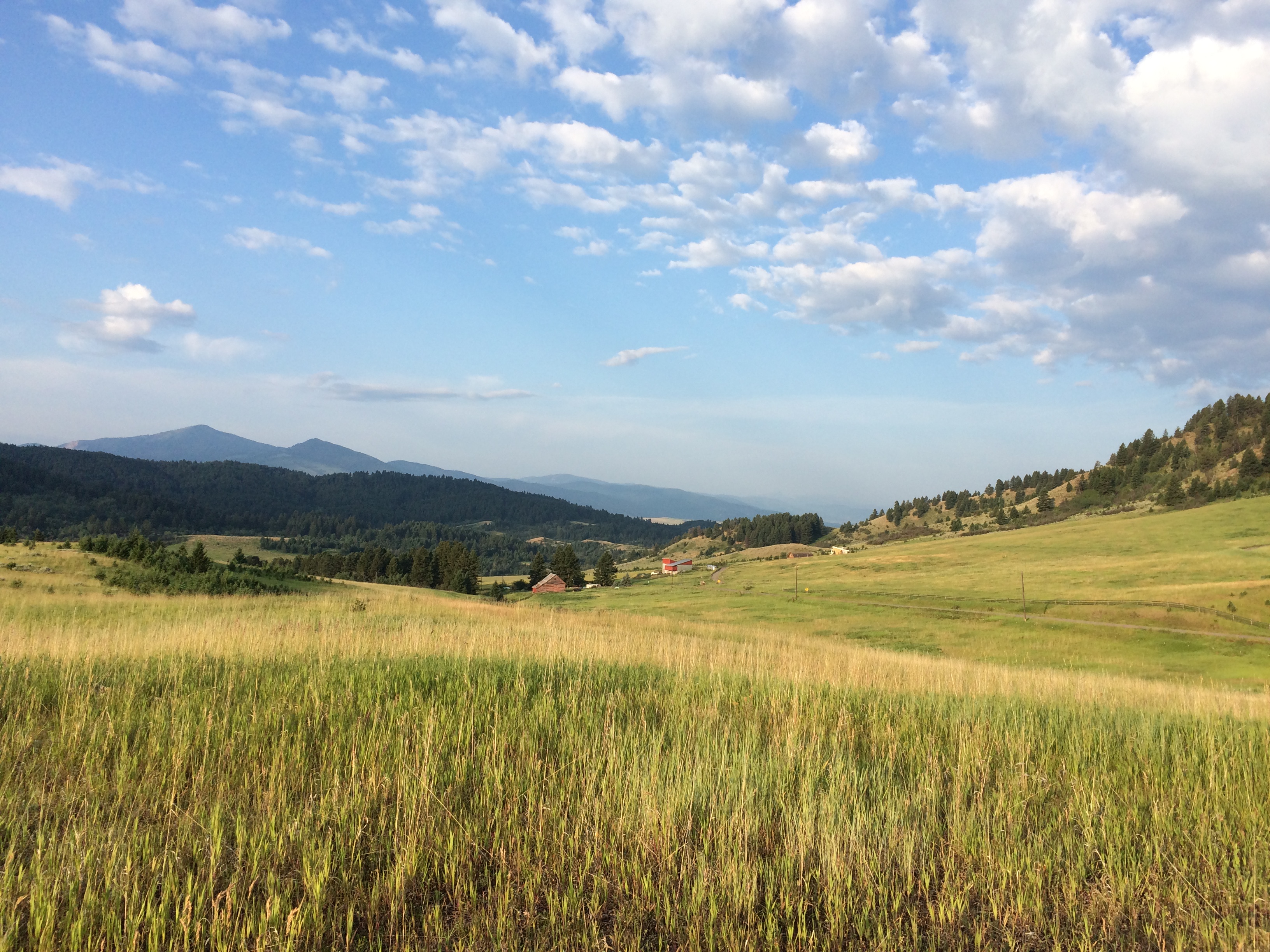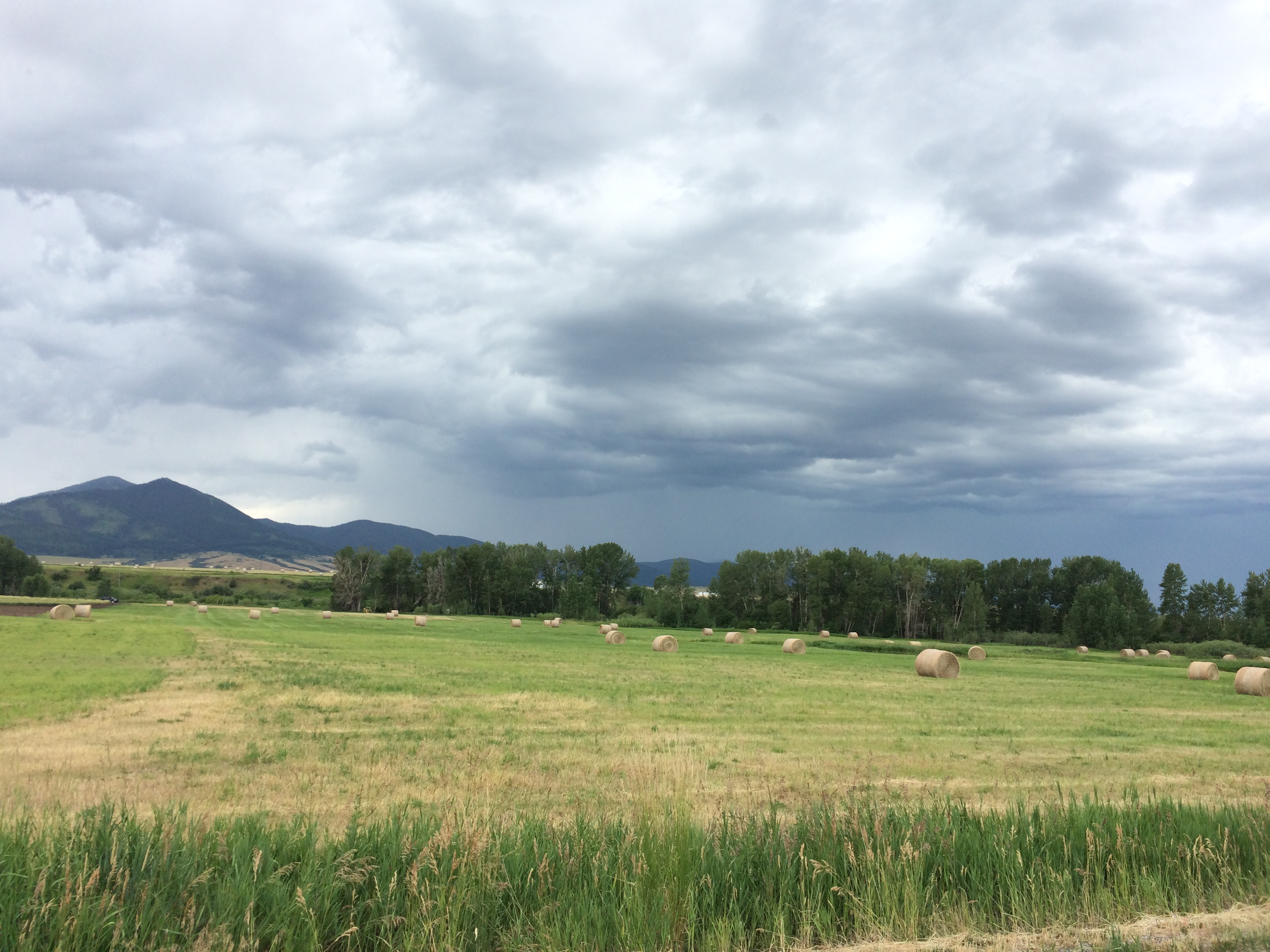 ….That was Monday, today is Saturday. In the week preceding Monday, Allistaire, Solveig, Sten and I drove east on I90 all the way home to Bozeman. Dr. Cooper supported us going home for a visit – Allistaire’s first time home since she left in October. Sten took the girls to clinic on Wednesday morning, July 1st so I could pack without them knowing in case labs were bad and we’d be thwarted at the last moment. But labs were fabulous and when the girls opened the door, Allistaire asked why all the bags were packed on the floor. “We’re going home to Montana for a visit, sweet girl.” She was beside herself. She couldn’t articulate her amazement and joy. I’d say she was flabbergasted and it was the best. I loved that joy. After staying the night in Spokane as we have done so many, many times we continued on east through a land that all cells of my skin, eyes, hair, fingernails all sought to soak in, like dear friends with whom you have long yearned to visit – blue of Lake Coeur D’Alene, marshy grasslands before Cataldo in Idaho, my great big hill I plan to climb one day – a hill already turning yellow in summer’s heat but great and white in winter’s cloak and shocking purple in spring with billions of flowers of a name I don’t know, that curve of rock that repeats pinks and purples of setting suns, a great boulder over green water – a swimming hole I imagine diving into its cool deeps and drying out in the warmth of the rock, tumbling great rounded groupings of rock like a Flintstone landscape over Homestake Pass, the river bottom with Cottonwoods in Whitehall and up that great curve of road that will soon bring my eyes to rest on the Bridgers in the distance – the mountains that are mouth to my home, to Kelly Canyon with its aspens, Rocky Creek, Bridger Creek, magpies and coyotes, black bears and deer, scores of red-winged black birds calling their eery beautiful cry in morning and evening, pairs of sand-hill cranes who sound as if they have mistaken Montana for Africa. There a multitude of colors of grass like waves moving in the wind over the contours of the land, punctuated by the silvery blue of sagebrush, that wondrous smell of moist coolness of night soaked up in their leaves and released like blessing. At long last we were home, home.