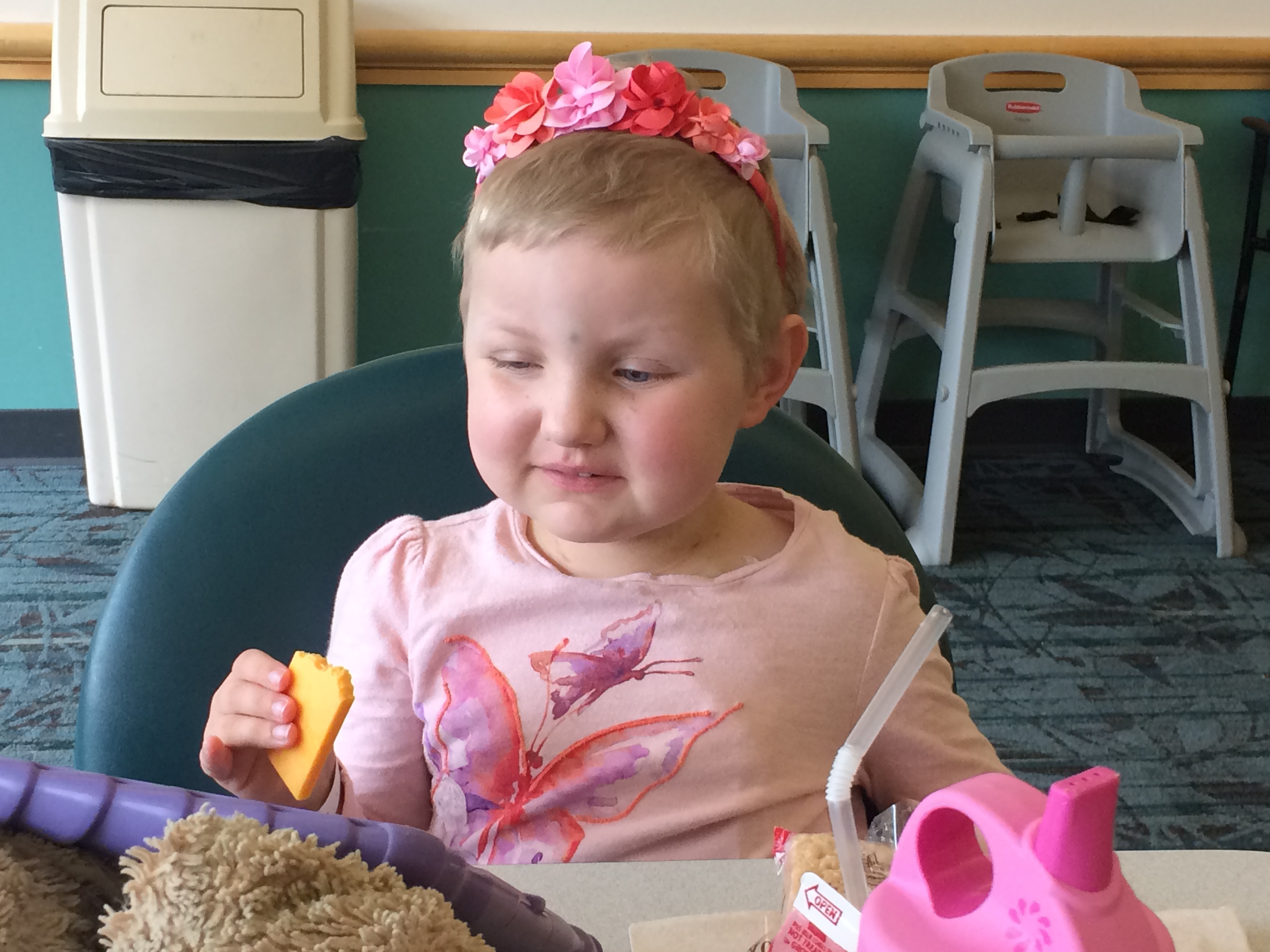 Yesterday, it was back to the hospital for labs and possible platelets. I was pretty sure Allistaire would need them because of the small purple pricks of petechiae (tiny broken blood vessels) mixed in like a new wave of freckles on Allistaire’s cheeks. A single round purple bruise adorned Allistaire’s forehead right between the eyebrows like some new-age tilak mark, in this case having bonked her head on the bar of the Target cart which she was eagerly driving when it rammed a shelf. Sure enough, her platelets were 5 and so we spent the morning at the hospital getting her all tanked up. Today we head back into the hospital again for labs and her third and final dose of Mylotarg. Tomorrow, yet again, for the twelfth day in a row, we will be in the hospital for her clinic appointment with Dr. Cooper. From there…well, we wait for her marrow to eventually recover, hope no infections get her and eventually plan to do another bone marrow biopsy and PET/CT to see how things worked. After that? Who knows. If she were miraculously clear of cancer, we might be able to proceed with the infusion of modified T-cells (this is not a transplant). If she has a partial response to the Mylotarg, it may make sense to try another round of it. If there is no response or her disease has progressed, well, it all depends…of course we would investigate all our options for other treatment or the woeful possibility of being done.