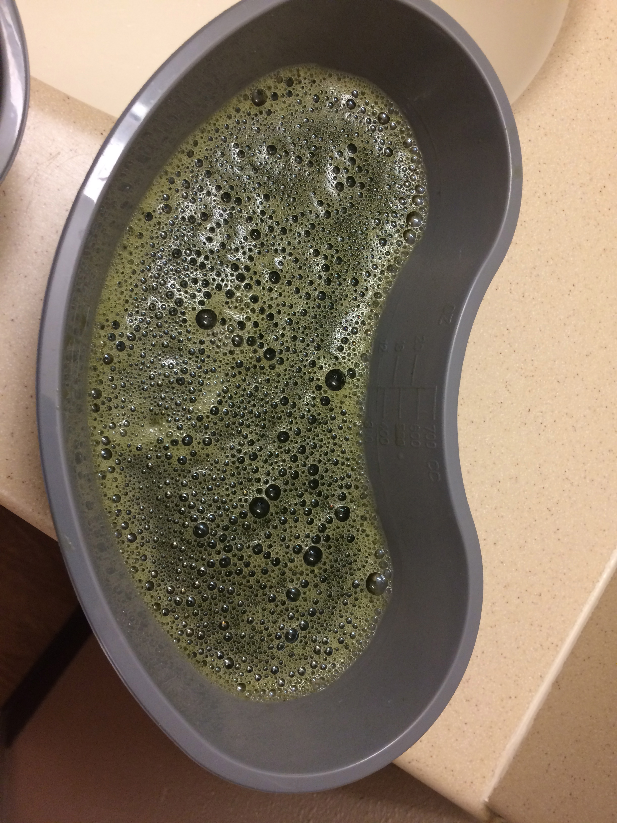 Wednesday’s CT showed a hematoma on her duodenum right where the GI doc took biopsies as part of the routine endoscopy. Despite getting a platelet transfusion that morning, a swelling bloody bruise had blocked the passageway to Allistaire’s intestines thus forcing all of her stomach acid and bile up and out and preventing anything from going down. Unlike her previous ileus in July where her gut simply stopped moving, in this case there is an actual physical blockage that given time will heal. Wednesday night she was admitted to the Cancer Unit where she is getting fluids with electrolytes and as many of her meds that can be given in IV form. Unfortunately not all of her meds, especially a number of her heart meds, can be given through her IV so at this point she is just not getting them. She also has not eaten since Monday evening at the airport when she was made NPO (Nothing By Mouth/Nil Per Os). At this point, because we hope this resolves soon, she is not on TPN (IV nutrition). Because of her throwing up, her brain MRI and PET/CT which were scheduled for Thursday were cancelled due to the greatly increased risk of anesthesia.