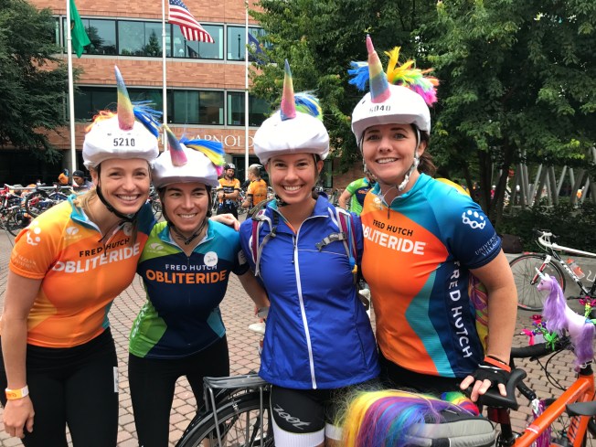 What can we do this year? Below are pictures from Obliteride 2017 and the slate in honor of Allistaire set in the courtyard of Fred Hutchinson Cancer Research Center – a place most fitting to remember her – a place where she and I spent a lot of time together as she received treatment and the place where some of the world’s top pediatric Acute Myeloid Leukemia researchers are housed.