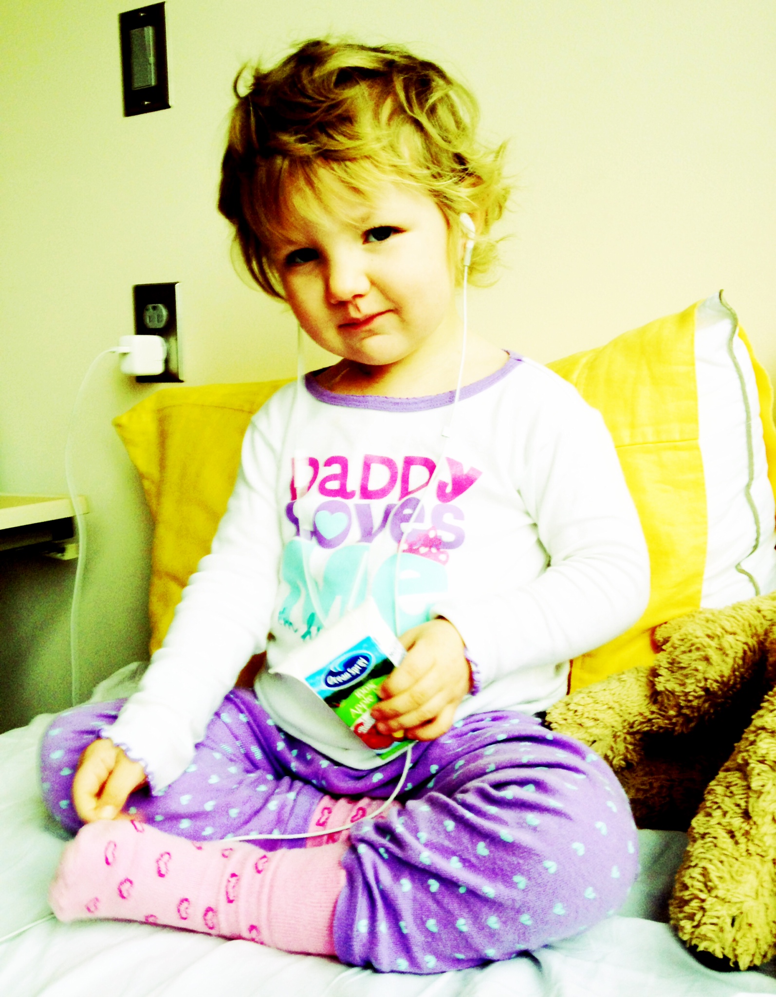 Neither Dr. Pollard nor Dr. Ho (our current attending doctor and another AML specialist) is recommending one option over another to us. They do not believe either of them will cure Allistaire of AML but at this point our goal is to get Allistaire into enough of a remission that she would be able to proceed with a transplant. True remission is considered less than 1% leukemic blasts in the marrow, but at this point we may have the ability to move forward with transplant with less than 5% blasts and absence of “bulk disease,” which is the term they use for the leukemia in Allistaire’s back and lymph node. Apparently, transplant is not at all good at curing bulk disease, given that its goal is destruction of cancer in the marrow. Bone marrow results we received yesterday show at least 25% of Allistaire’s marrow is leukemic blasts. Her bone marrow test from almost four weeks ago showed 1.1% blasts. We are still waiting for results to determine if there is leukemia in her spinal fluid.