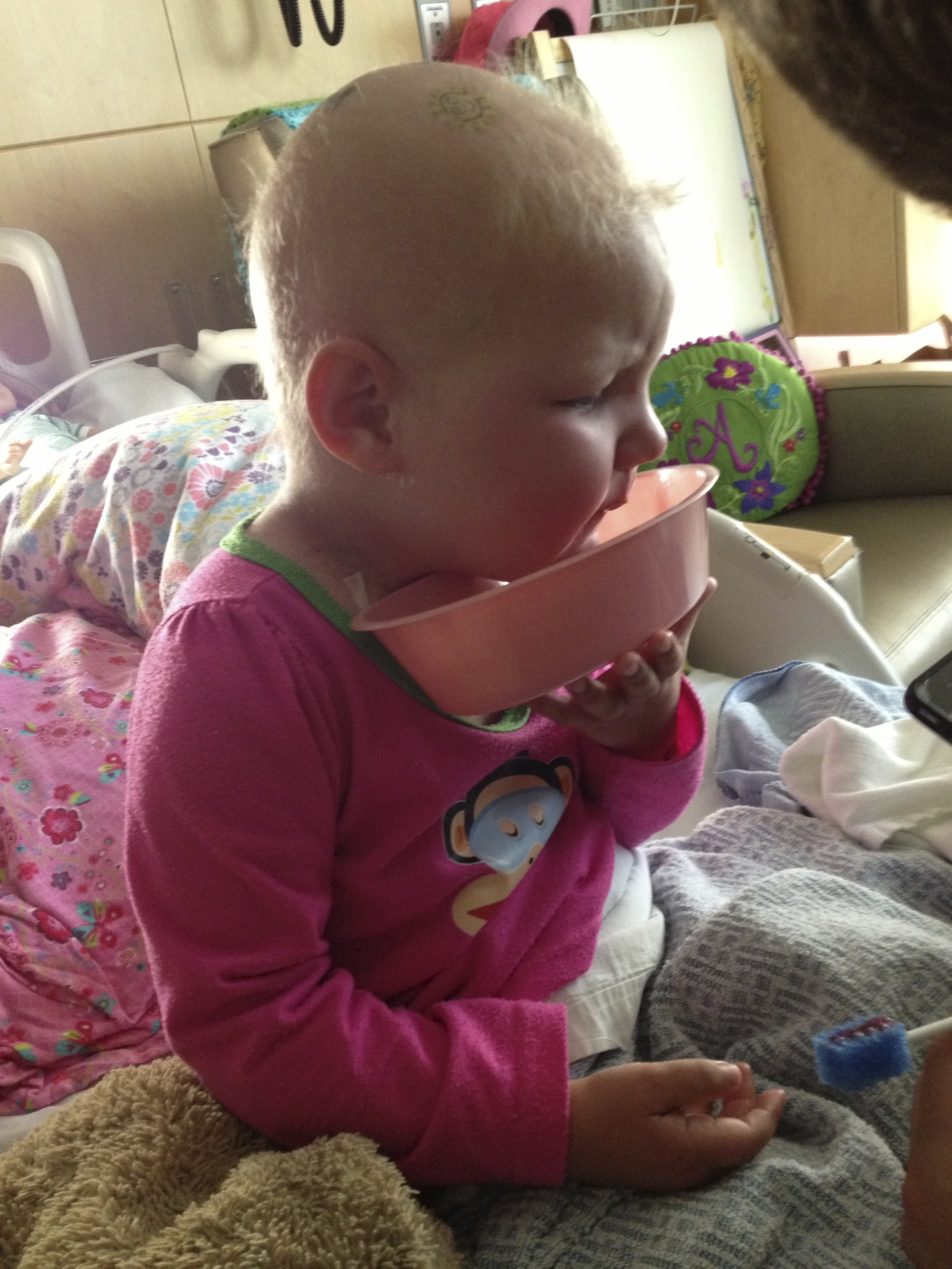 A virus has taken up residence in Allistaire. Interestingly, it is a virus which even the most sensitive viral tests at SCCA cannot identify, never the less, she has had copious amounts of snot and some coughing. It is her first cold in over a year at least. With this virus we have seen what may be a small flare of GVHD, evidenced by a red spotted rash on her cheeks, spreading out from near her nose. Additionally, there seems to be a bit of a bumpy, slightly patchy pink rash on parts of her arms, back and chest. I was instructed to watch carefully for its advance both in terms of spread and speed. When Allistaire received the infusion of Sten’s stem cells (say that 5 times fast), she was given some mature blood cells from his peripheral blood but primarily his stem cells. Because the mature blood cells she received from her have mostly died out at this point, the immune fighting cells in Allistaire’s body are immature and have never been exposed to pathogens and are presently “uncoordinated” in their assault on this viral invader. Hence, both the virus and places like her skin are under attack. Apparently this pairing of having a virus and a flare of GVHD is very common. In fact, when there is evidence of GVHD, the doctors then go looking for an infection.