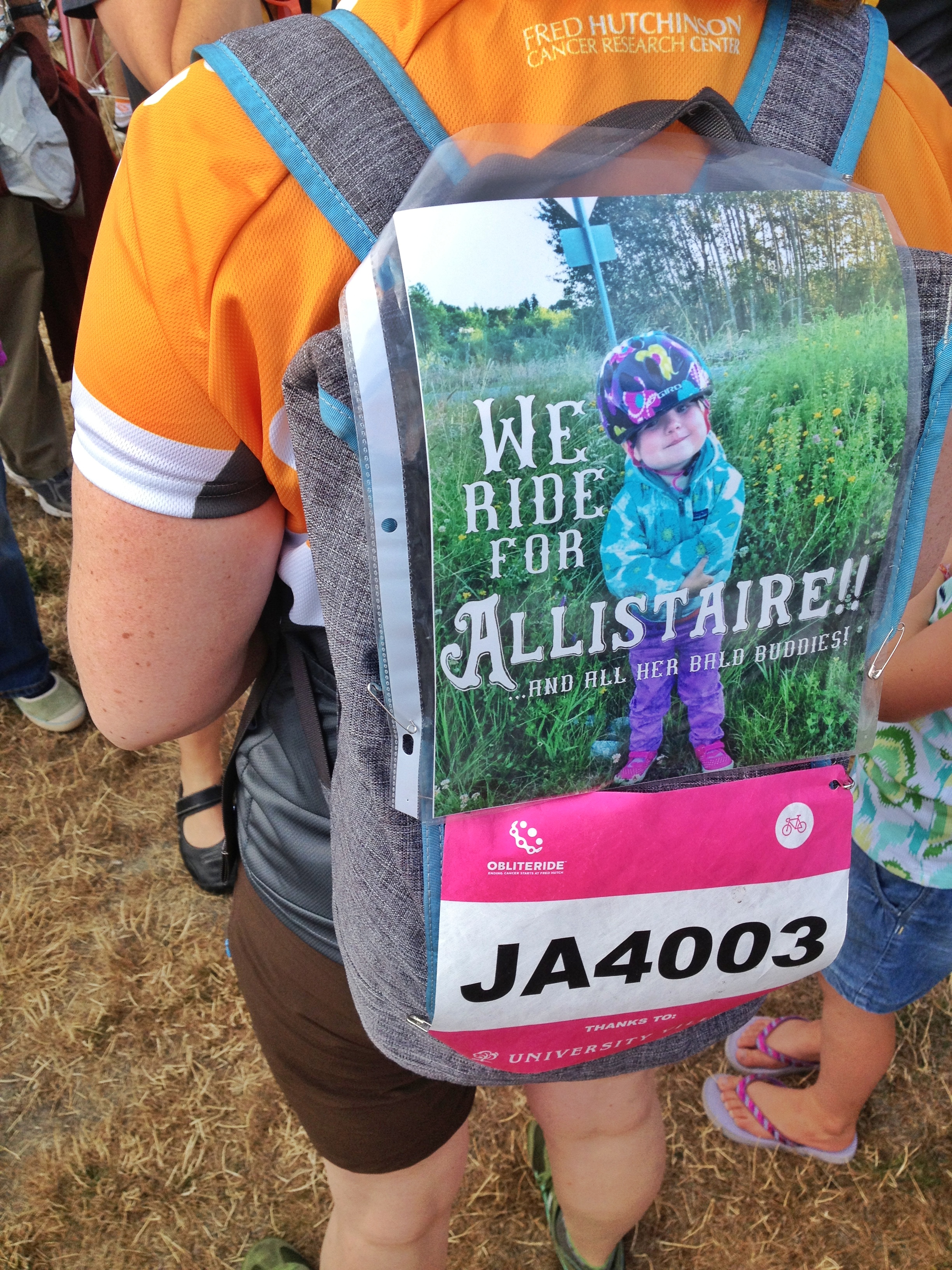 I will ride in Obliteride again this year because I will forever be indebted to Fred Hutchinson Cancer Research Center. Allistaire would not be alive today were it not for the research, the clinical trials and the treatment she has received through Fred Hutch. I ride in gratitude for my child’s life. I ride in sorrow for the children I’ve known who have died. I ride in hope for cures for cancer!