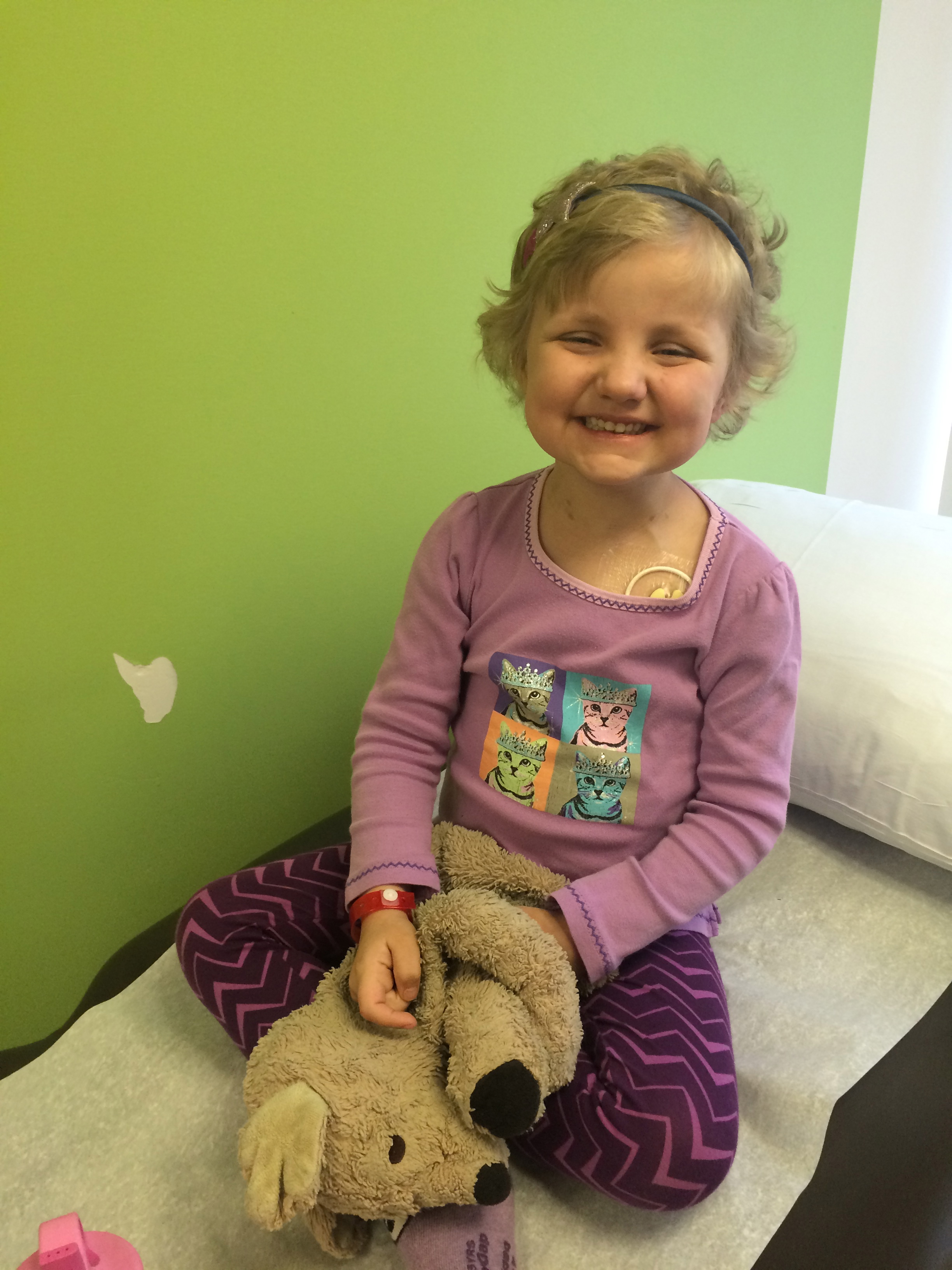 The other thrilling development is that last week I met with Dr. Cooper, Allistaire’s primary oncologist, Dr. Law, her cardiologist and head of the heart failure and transplant team and Dr. Bleakley, our primary bone marrow transplant doctor.  Also present in support were Jeff and Karen on the PAC (Pediatric Advanced Care) team and our social worker, Megan.  While I will hold off in explaining the details, in short, the outcome of the meeting was an agreement to aim toward getting Allistaire to transplant as fast as possible.  With Allistaire’s ejection fraction on her last echo being 45, she has finally reached the threshold for transplant.  There is a lot more to say on this subject but for now, the point is, we are now in a position with Allistaire’s cardiac function to consider transplant!  I can hardly believe she has made it this far.  Dr. Bleakley proposed a very interesting transplant option that I initially wanted to spit right out of my mouth in rejection – however, after more information and consideration, it seems it may be an incredible option for Allistaire.  A number of tests are underway to  determine our options moving forward.  The most immediate question is what chemo(s) to give Allistaire in the coming, and hopefully last, round of chemo before transplant.  While Mylotarg has been extremely successful for Allistaire (at least based on the brain MRI – we still have to see what’s in her marrow in the upcoming biopsy) it has in the past, when given in one large dose, been associated with VOD (Veno Occlusive Disease) during transplant.  Dr. Cooper is exploring chemo options available for Allistaire.