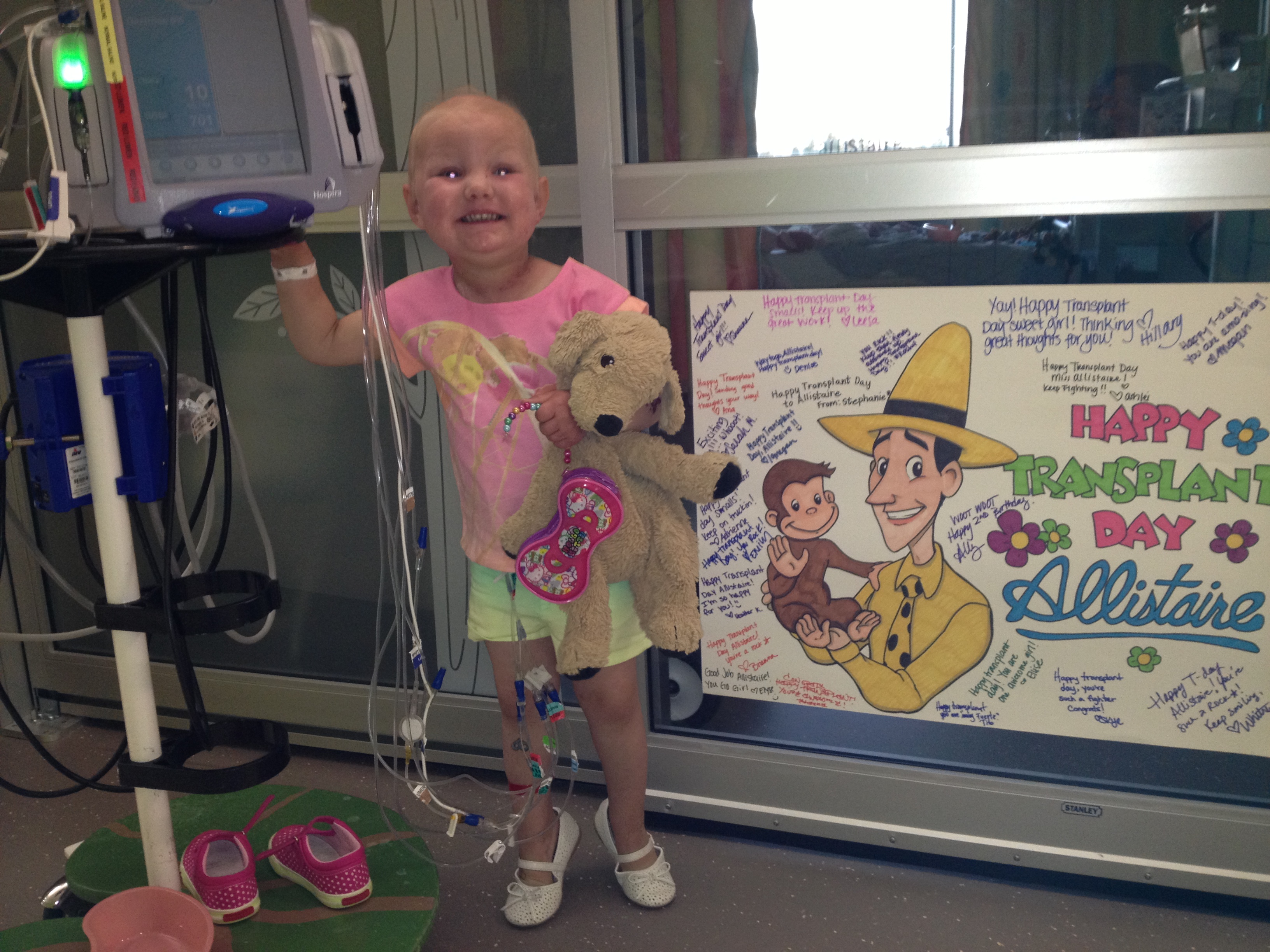 Today marks Day+43 post transplant. We are still very early in this very long process. My brother asked me a while back, when we would know if the transplant was successful. Success is multi-pronged in this situation. The first mark of success is that she has survived the actual transplant process itself. Her body and specifically, her heart was not overwhelmed by the cytokine storm of the infusion of the donor cells, nor the hyper-hydration necessary with the chemo. The cyclophosphamide did not cause the slim but terrifyingly possible acute heart damage. Her lungs did not bleed nor did she have the brain damage possible with MMF. Her liver remained healthy despite the increased risk of VOD brought on by several rounds of Mylotarg. Her graft did not fail, rather Sten’s cells have latched on forcefully resulting in 100% chimerisms. Her marrow is clear of detectable cancer both by Flow Cytometry and cytogenetics. Thus far, her transplant has been a success. It is a beautiful surprise. Allistaire’s golden birthday is coming up soon and honestly, as I look back, this is the fifth birthday that I never knew would come and had much reason to think it never would. It is the fifth time we have had cause to celebrate life that might not have been, life that has been relentlessly hounded by cancer. But hope has continued to mark our days, and now years.