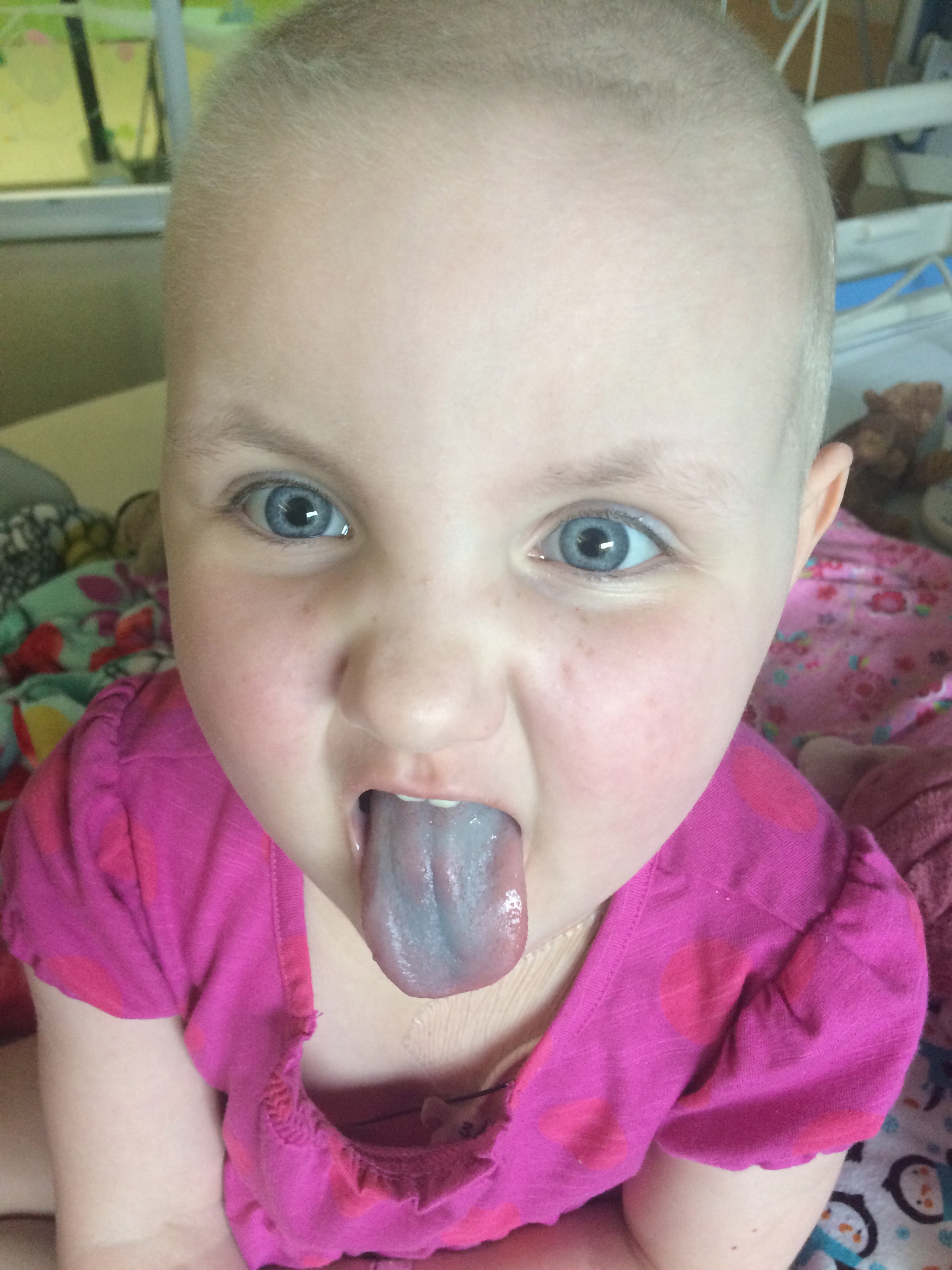 The next storm on the horizon begins tomorrow with the two days worth of cyclophosphamide infusions. A side effect of cyclophosphamide can be bladder bleeding which they try to counteract with hyper-hydrating and a medication called Mesna. Because of Allistaire’s weaker heart, they are reducing the hydration from the standard 1.5 times maintenance to 1.25 and are hopeful that this will both be enough to prevent the bladder bleeding and not overwhelm her heart. Another serious and potentially fatal, but rare, possible side effect of cyclophosphamide is acute cardiomyopathy due to hemorrhagic myocarditis. Depending on how things go, Allistiare could be transferred from the ICU back to the Cancer Unit early next week.